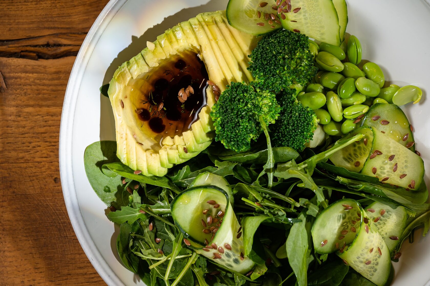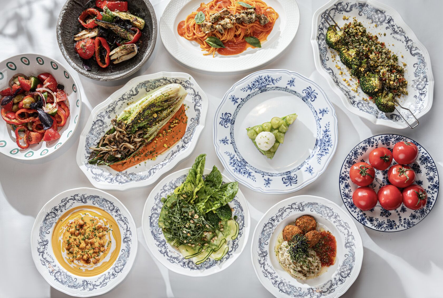 Среди авторских акцентов — бабагануш с фалафелем: ароматный нут с тахини и лимонным соком соединяется с бархатной текстурой запеченного баклажана, томатной сальсой и свежей зеленью. Табуле с брокколи на гриле переосмысляет классику благодаря обжаренной брокколи и фисташкам, которые добавляют блюду структуру и характер. Романо на гриле с вешенками и соусом ромеско строится на тонкой работе с огнем и ореховыми оттенками.