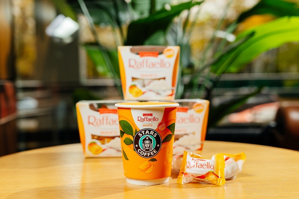 Весь месяц в кофейнях будет проходить акция «И целого мира манго» - коллаборация Stars Coffee с Raffaello. При покупке новинки каждый гость получит в подарок сладкий комплимент – конфету Raffaello с новым вкусом манго и кокоса.