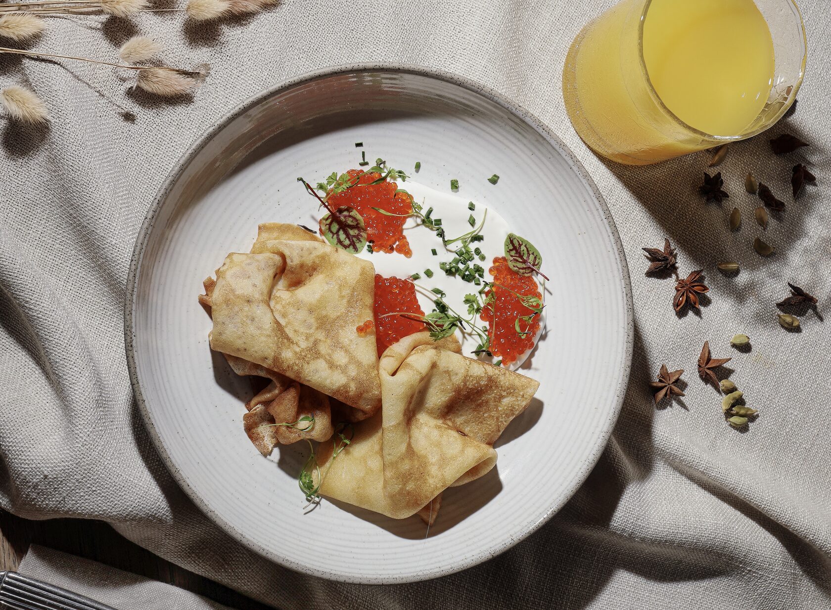 Ресторан MYST представляет масленичное меню, где классика русской кухни звучит по-современному, а блины становятся основой для необычных сочетаний и вкусов. Гостям предложат блины с икрой и муссом из творожного сыра, а также с пастрами и трюфельным сыром качотта и с вешенками в сливочном соусе. На десерт — блины с манго и кокосовым кремом и блинный медовик.