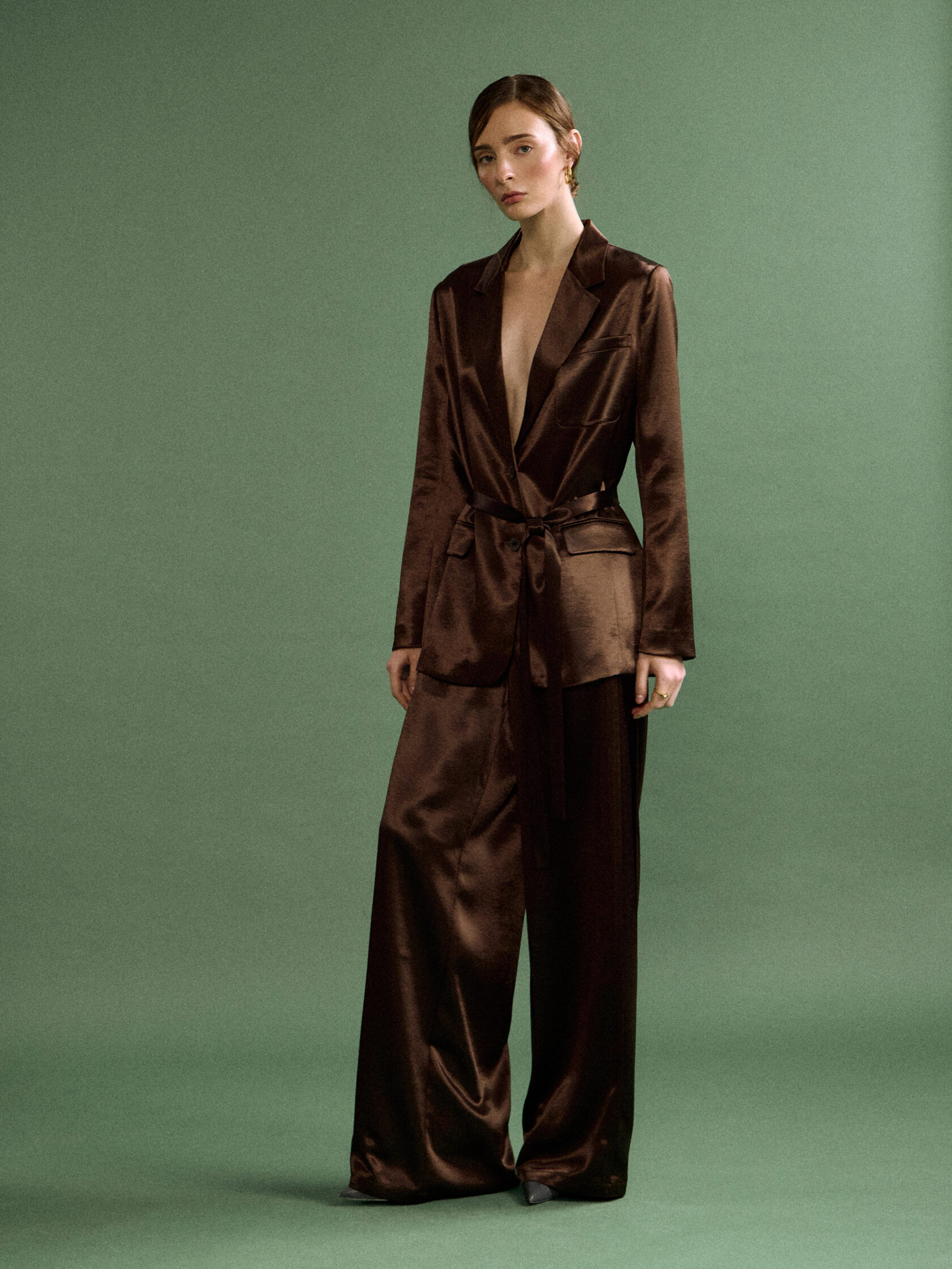 Бренд HASS представил новогодний дроп, вдохновленный трендами предстоящего 26 сезона - бохо и soft glamour. В коллекции сочетаются простота кроя, комфорт, деликатный блеск и эстетика lazy days - философия жизни, отраженная в вечерней капсуле, которая не требует повода и органично вписывается в повседневную жизнь. В коллекцию вошли жакет в шоколадном цвете, брюки расклешенного силуэта, блюза в песочном оттенке с воротником-стойкой, пальто свободного кроя с мягкой линией плеч и не только.