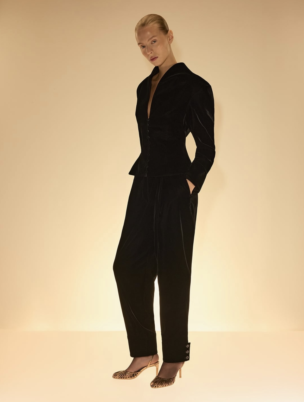 В новом дропе вечерней коллекции LOVE REPUBLIC классические силуэтные фиты и сдержанная цветовая палитра сочетаются со сложными конструкциями и искусным декором. Основной фокус сделан на черный бархат, сатинированные ткани с деликатным блеском и крупные пайетки, создающие эффект “голого” тела — материалы, которые особенно роскошно смотрятся в вечерних образах и идеально вписываются в black tie дресс-код. В палитре классический черный соседствует с карамельным, молочным и шоколадным, поддерживая sophisticated-настроение дропа.