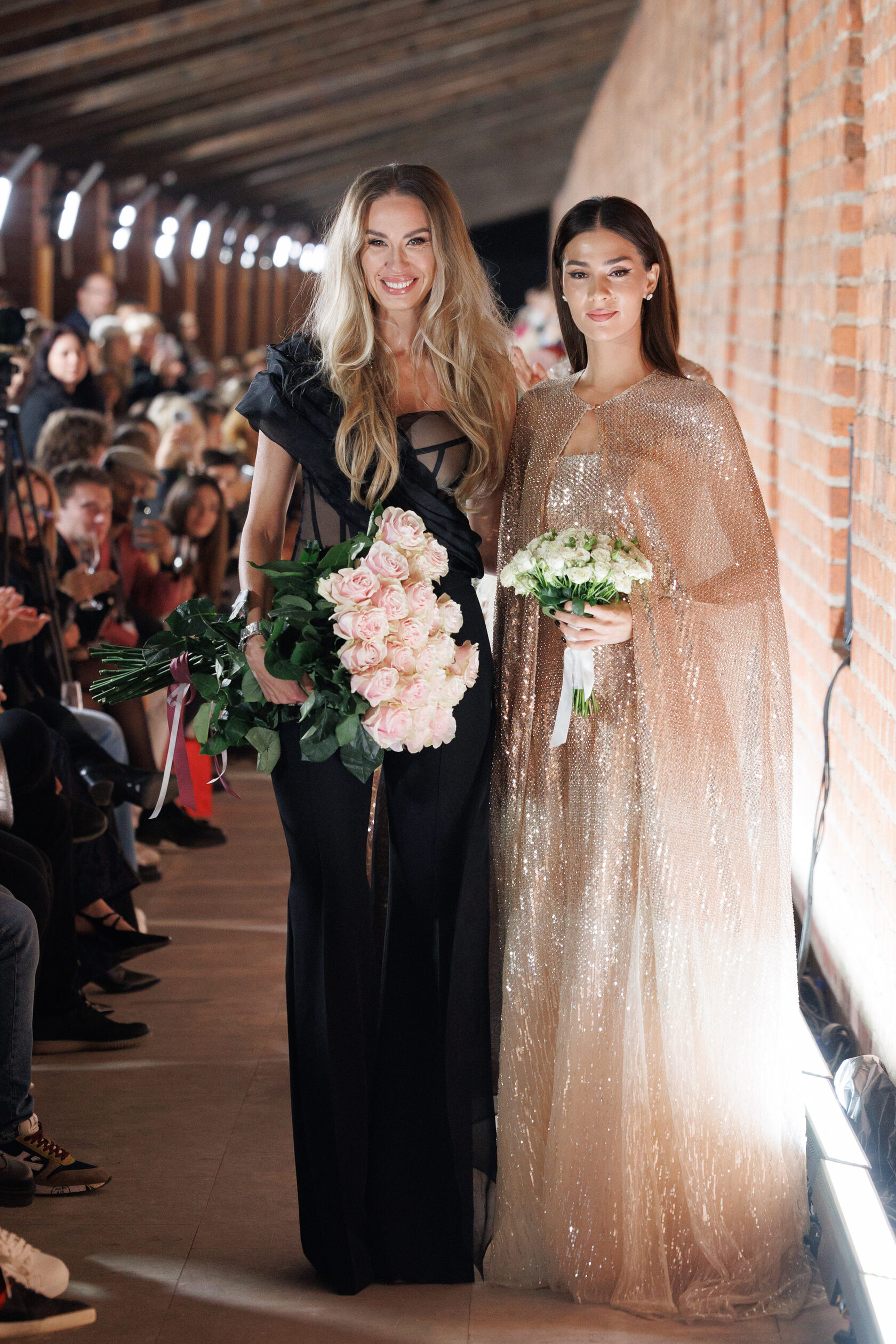Открыла показ актриса Анна Александрова, которая продемонстрировала джинсовую куртку, подбитую соболем и расшитую бисером. А муза бренда, Анастасия Шубская, супруга прославленного хоккеиста Александра Овечкина, завершила показ эффектным появлением в образе невесты – в роскошном платье с кейпом, из расшитой стеклярусом ткани. В показе также приняли участие продюсер Марина Ермошкина и бизнес-леди, попечитель благотворительного фонда «Жизнь как чудо» Юлианна Виннер.