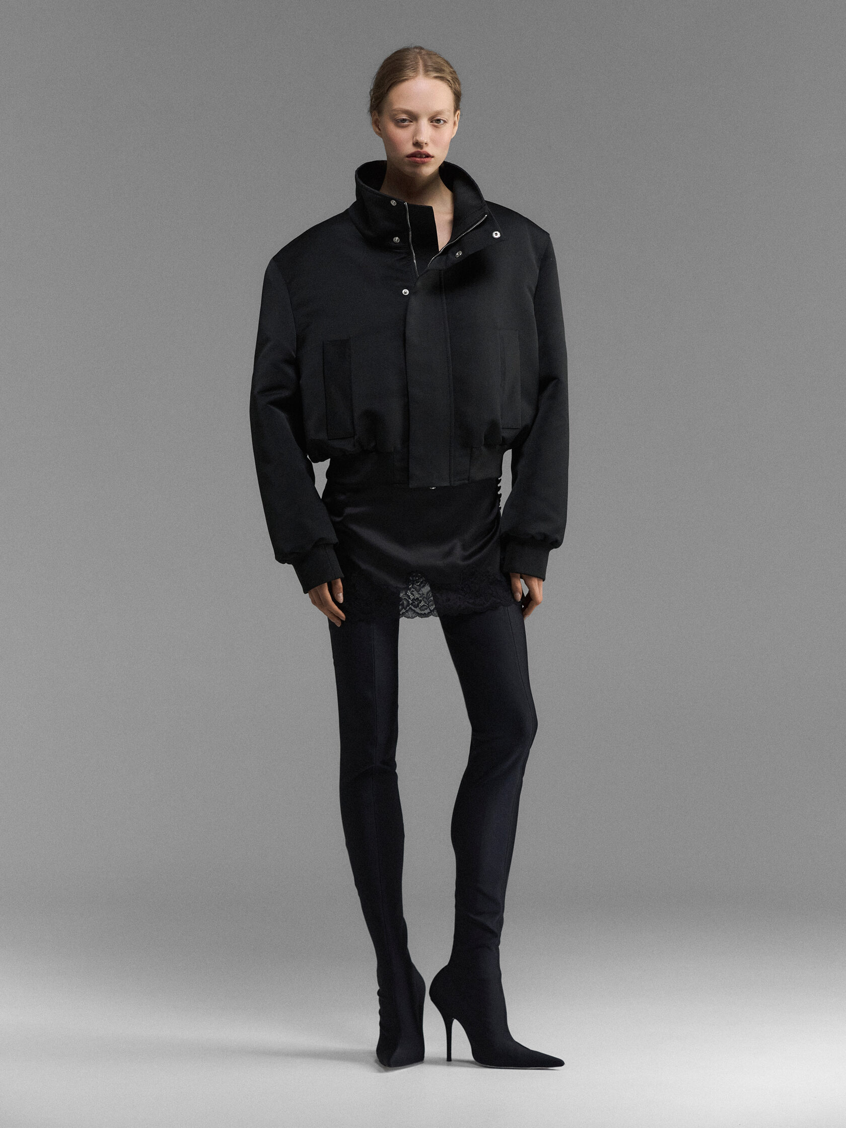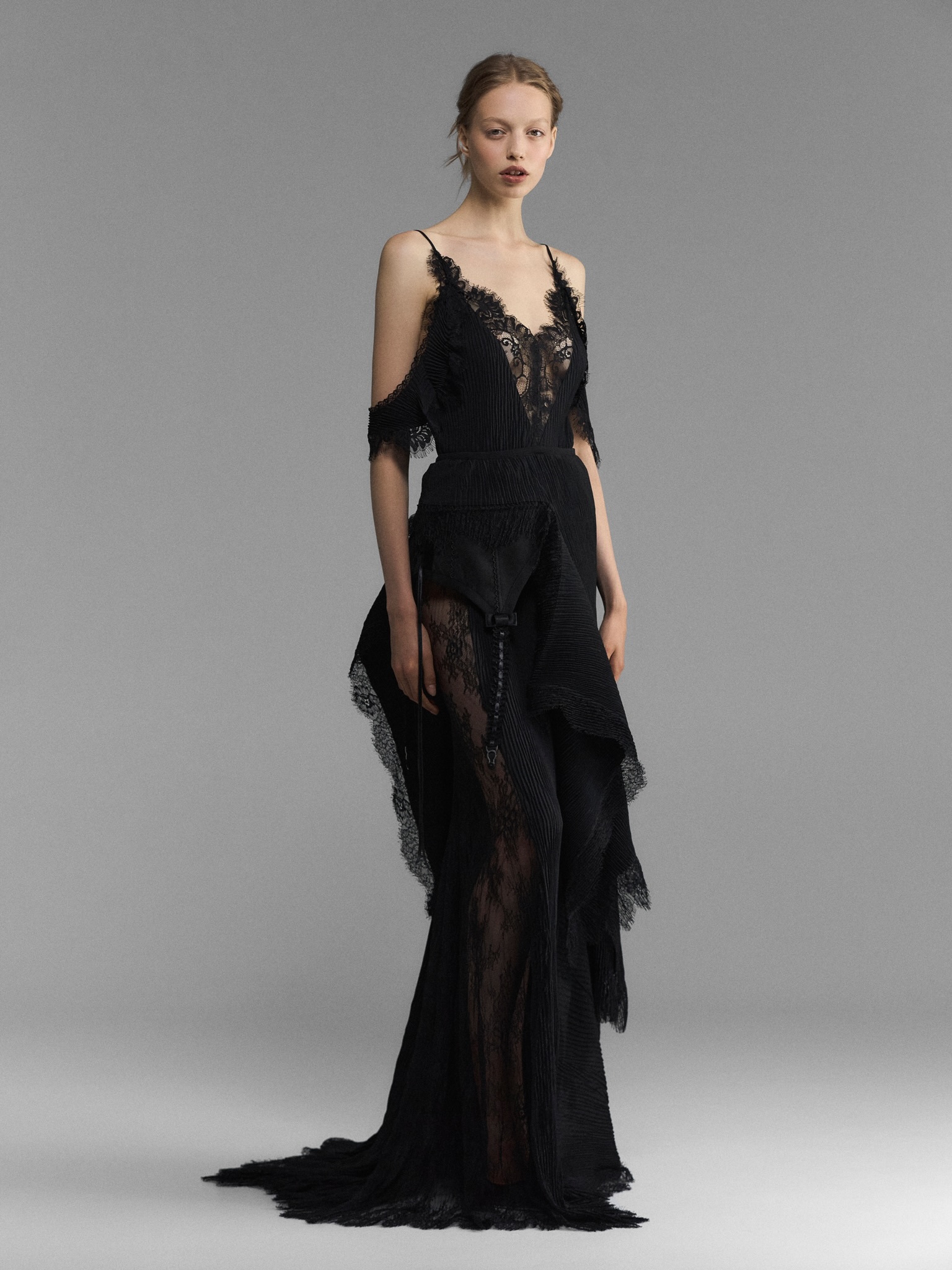 Поверх прозрачного кружевного платья смелая и ироничная героиня Daniil Antsiferov наденет бомбер с застежкой от бюстгальтера на спине. Невесомые шелковые платья завяжет на тонкие ленты, оставаясь обнаженной и одетой одновременно. Также в коллекции из верхней одежды будет представлена оверсайз парка сложного кроя и неоновое зеленое пальто — бунтарский привет из прошлого, оммаж первой курсовой работе Даниила.