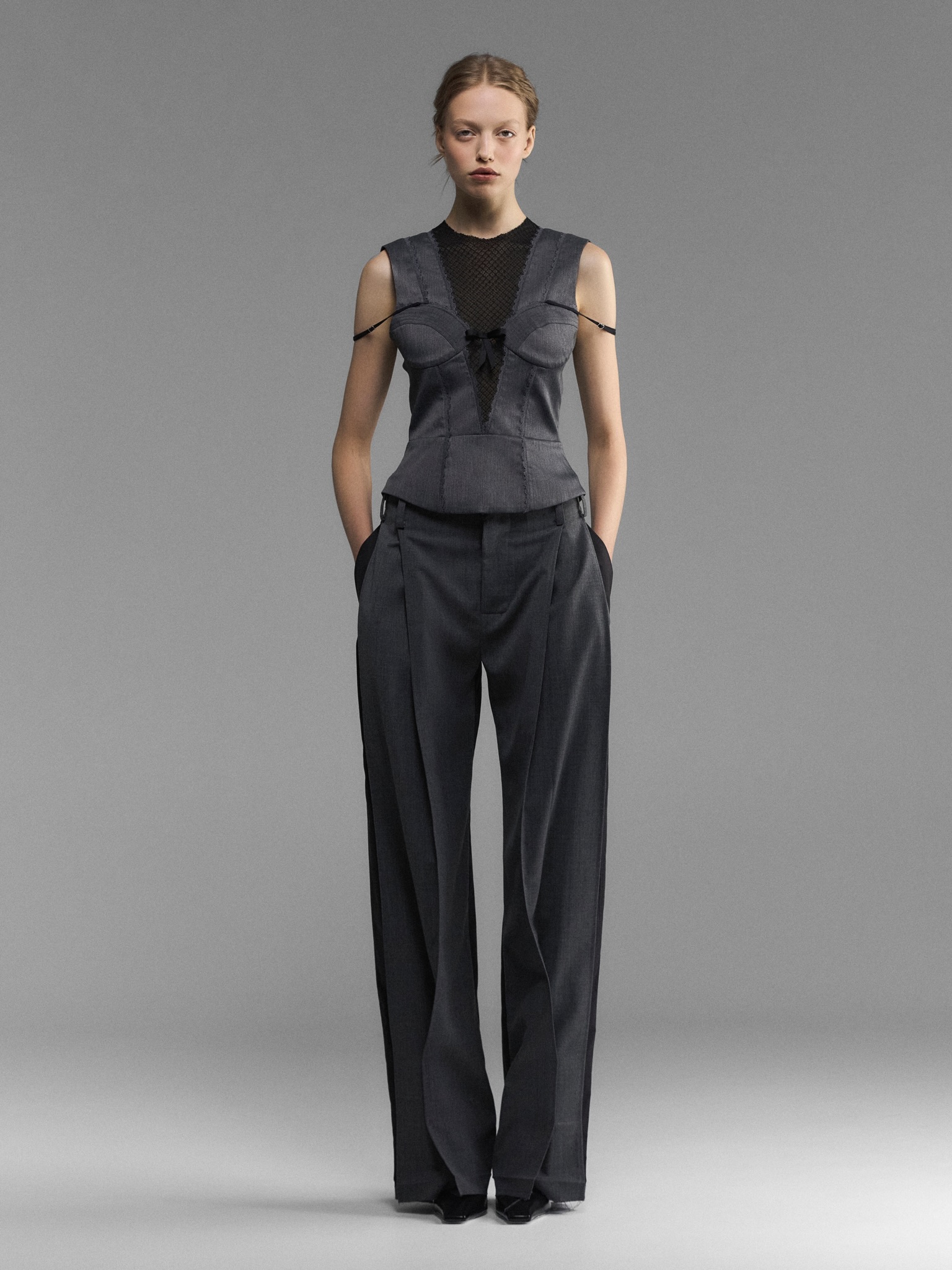 Продолжая переосмысление модных архивов, Даниил Анциферов представляет новую коллекцию FW'25-26 с узнаваемым почерком. Бельевая эстетика, ставшая визитной карточкой бренда, продолжает выполнять ключевую роль, сохраняя дерзкий и чувственный характер.